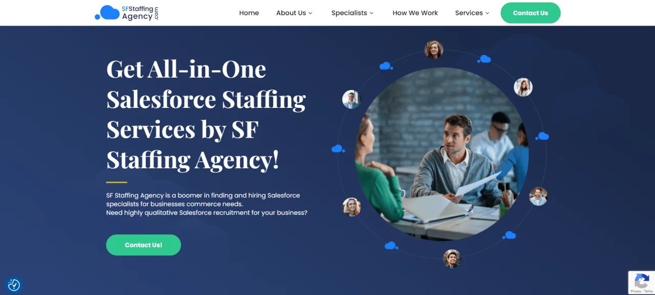 SF Staffing Agency is a staffing and recruitment company focusing on Salesforce. They have a global pool of Salesforce professionals with proven expertise across multiple Salesforce products and roles.